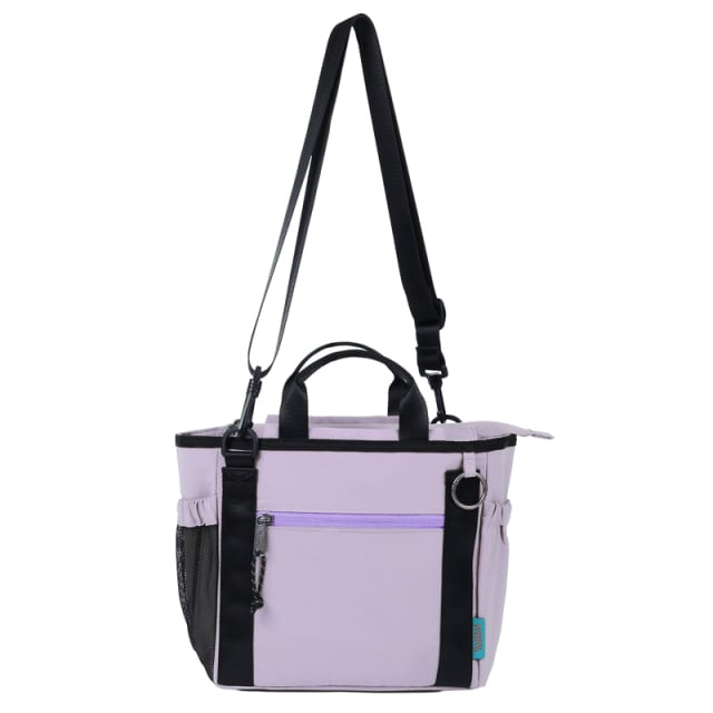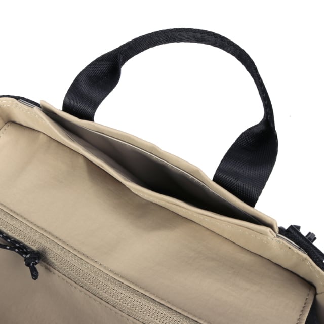 お出かけにピッタリなサイズ感で、 ポケットが8個ある2WAYショルダーバッグです。 おむつポーチ、ペットボトル、手帳、お財布など小さなお子さんとのお出掛けに必要なモノがしっかり収納できます。 上部のトラッシュポケット (ゴミ入れ) は、ティッシュや飴の包装など、 ちょっとしたゴミをサッと入れられます。 持ち手の下にはおやつケースやキーホルダーを掛けられるリングカラビナ付き。ショルダーストラップは肌への負担を軽減できるよう柔らく、そして上品な風合いの素材。デザインもベーシックなので家族で使えます。